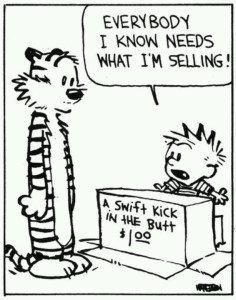 This is something I struggle with often! Occasionally, I will have an idea I came up with or one that my team did and start to push it. I know it is the right solution and that it would benefit so many. However, just like young Calvin in this picture, my “packaging” is not the best. No one wants to hear they are not perfect or their original idea is the problem we are all trying to solve. Two things we can do: package it in a way that motivates them to change. Sometimes, I concede credit and allow them to think it is their idea. The second thing is to not get married to our own ideas that we resist any critical feedback we may receive.