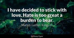 Have you ever disliked someone at work? It is a chore to be in the same room. I would have to go out of my way to be professional and yet make sure I was not being nice. It took so much more energy and their lives were typically un-phased by my efforts. It is better to just love on everyone and look for the common ground in those you dislike. Hate never wins.