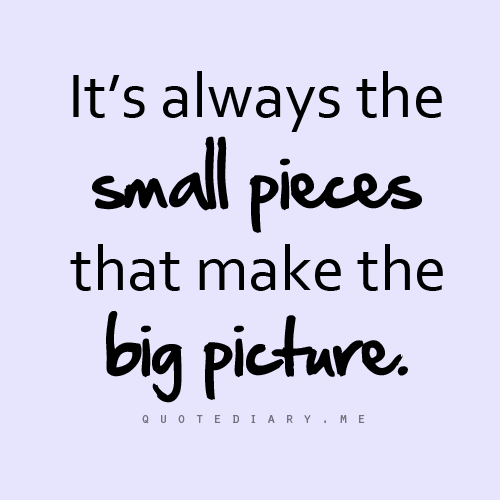 First is the frame…it is the building block for the puzzle. Get that together and then you can start on the middle. Then you find that next part that you can try and piece together and focus on that part. If you have a partner, they might focus on another portion of the puzzle. As each of you finish your small section, you continue to complete small sections until you finally have a complete picture. Any of this sound familiar???